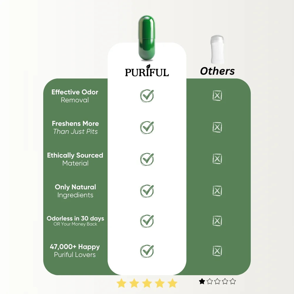 Deos utiliza ingredientes como clorofilina y extracto de perejil para limpiar su sistema y atacar los compuestos que causan mal olor en el intestino antes de que se liberen a través del sudor o el aliento.