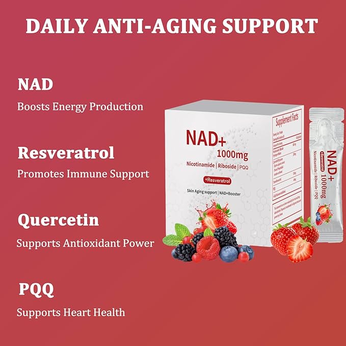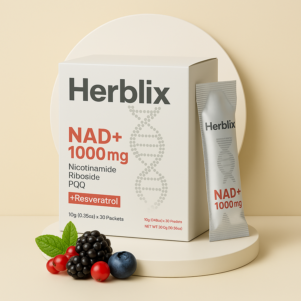 NAD+ (dinucleótido de nicotinamida y adenina) es una coenzima vital que favorece la energía celular, la reparación del ADN y el envejecimiento saludable.