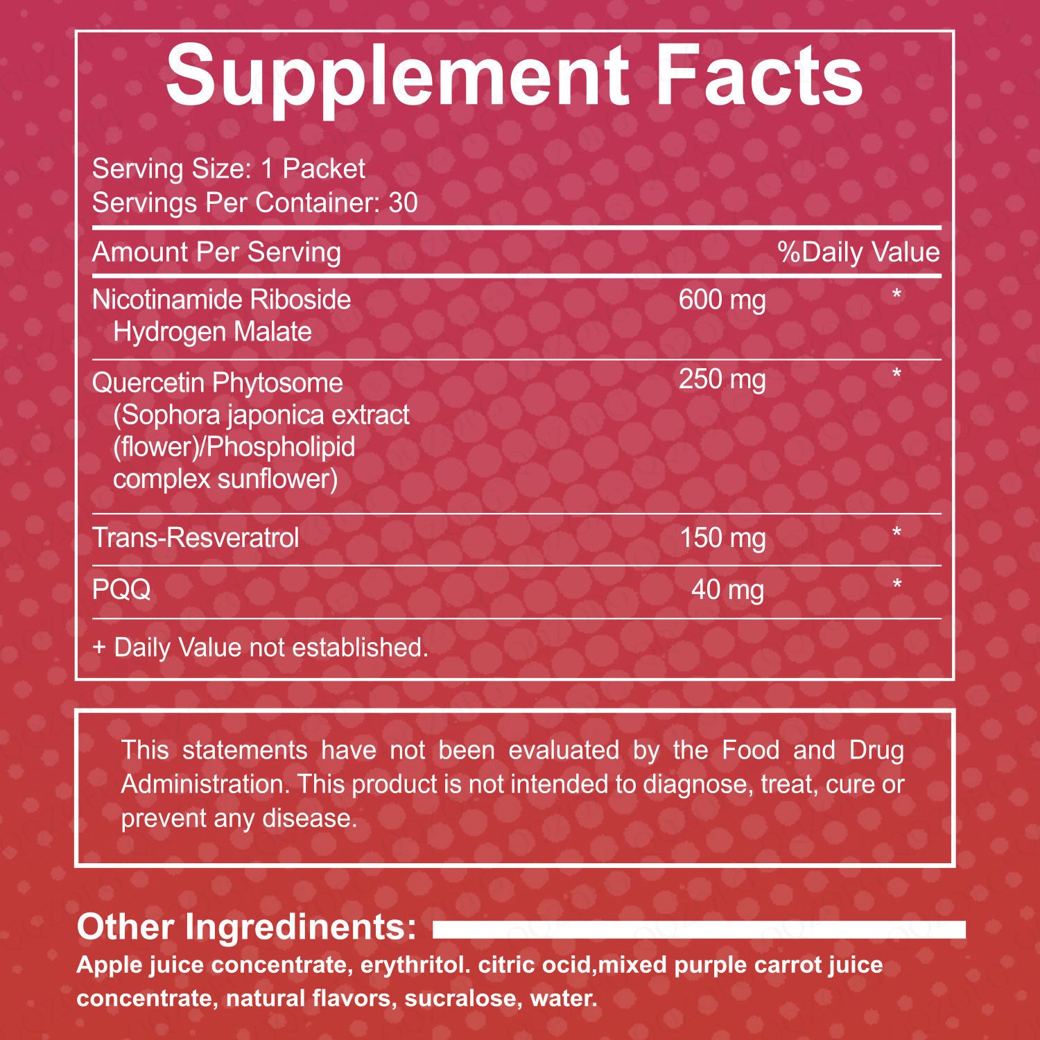 Utilizamos ingredientes de alta calidad farmacéutica, como nicotinamida ribósido, resveratrol y PQQ, seleccionados por sus beneficios comprobados y su pureza. Nuestra fórmula está probada por terceros y se fabrica en instalaciones con certificación GMP, lo que garantiza una solución segura, consistente y eficaz para la claridad cognitiva, la vitalidad celular y el bienestar a largo plazo.