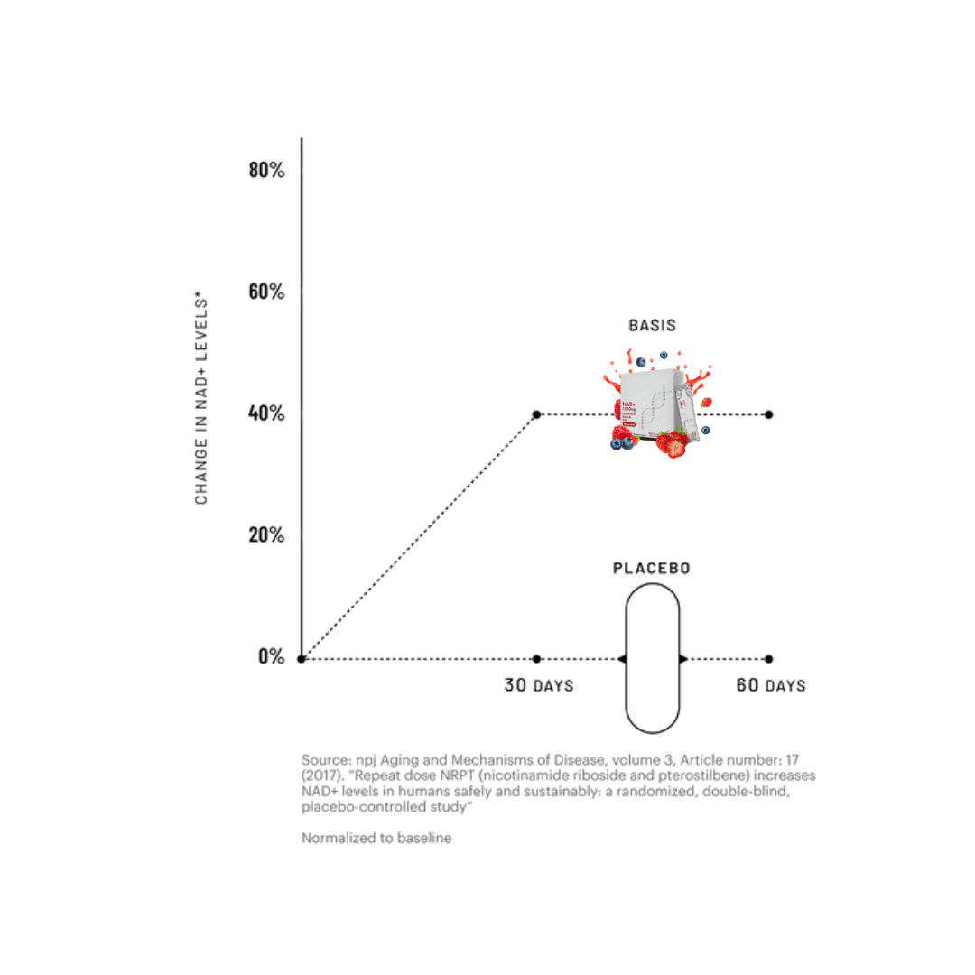Nuestra fórmula cuenta con el respaldo científico y está diseñada para ofrecer un aumento constante, seguro y eficaz de los niveles de NAD+, con un aumento promedio de hasta un 40 % en estudios realizados en humanos. Evaluaciones toxicológicas independientes también han destacado la superior seguridad y biodisponibilidad de nuestra mezcla patentada en comparación con los productos NAD+ estándar, lo que refleja nuestro profundo compromiso con la calidad y el rigor científico.